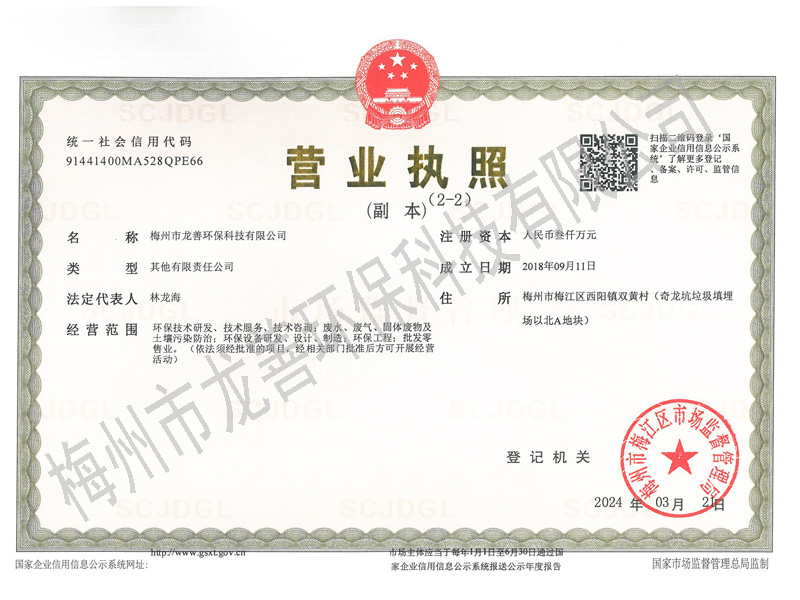 梅州市龍善環(huán)保科技有限公司為龍善環(huán)保股份有限公司(簡稱“龍善環(huán)保”)子公司。龍善環(huán)保于1995年12月成立,注冊資本為人民幣6,000萬元,總部位于深圳市南山區(qū)月亮灣大道2078號兆龍大樓16層。公司經生態(tài)環(huán)境部、廣東省生態(tài)環(huán)境廳、深圳市生態(tài)環(huán)境局、深圳市交通運輸委員會、深圳海事局等部門許可專業(yè)從事陸地和海洋環(huán)境保護產業(yè)的高科技民營企業(yè),主要經營業(yè)務包括工業(yè)廢物收運、資源化利用和無害化處理處置、海洋船舶污油水接收和集中處理處置、突發(fā)環(huán)境事故清污應急處置等......